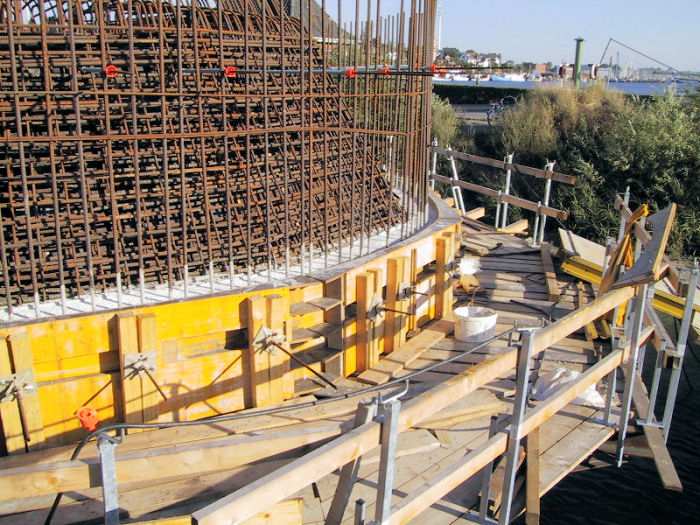 | 27.08.2000 - 8:46 Uhr - Kappeln/Schlei: Neubau einer Klappbrücke Pfeiler 20 In der Baugrube wurde der Sockel für das Fundament des Pfeilers eingeschalt. Aufgestellte Schalwände links und rechts von den herausragenden VM-Pfählen. Foto: Eckhard Schmidt - Kappeln - (C) 2000 |