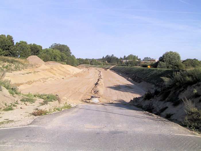 | 27.08.2000 - 8:59 Uhr - Kappeln/Schlei: Neubau einer Klappbrücke Straßenbaustelle Ellenberg Blick von der Ostseestraße (Ellenberg) auf das neu entstehende Teilstück der B203 von Brückenbaustelle bis zur Kreuzung B203 / Ostseestraße. Die Kreuzung befindet sich hinter der Aral-Tankstelle. Foto: Eckhard Schmidt - Kappeln - (C) 2000 |