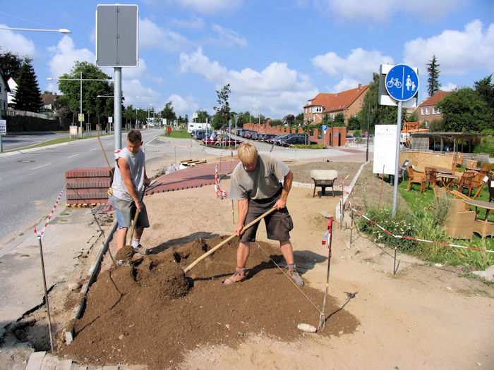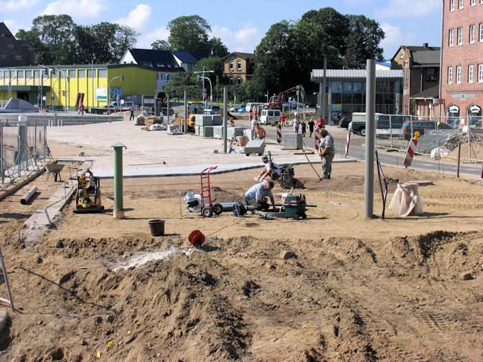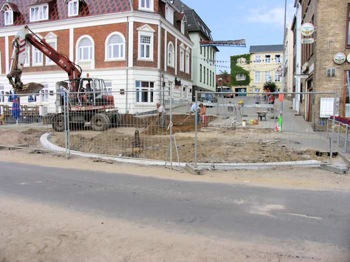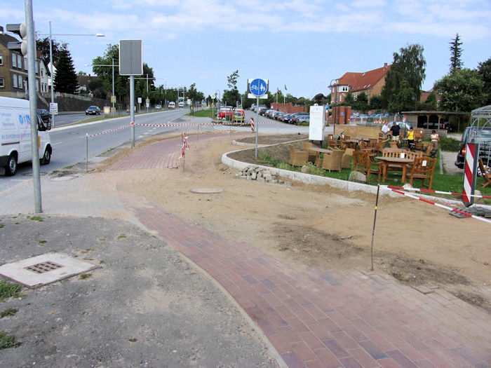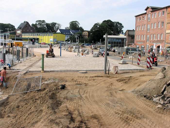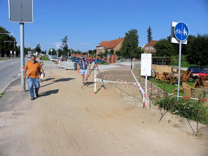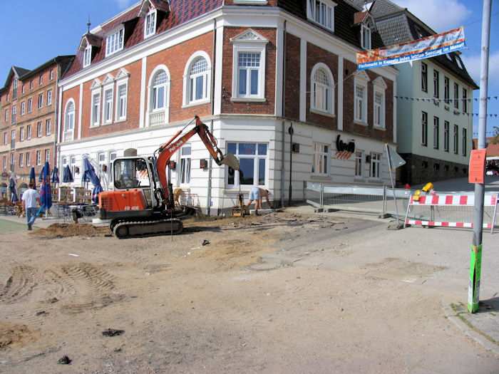 | 03.08.2004 - 10:45 Uhr - Kappeln/Schlei: Nordhafen Umgestaltung des Hafenvorfeldes: Schleibrücke / Hohlweg bis Fährberg Hohlweg - Am Hafen Es wird gerade der Geh- und Radweg für die Pflasterung vorbereitet. Foto: Eckhard Schmidt - Kappeln - (C) 2004 |