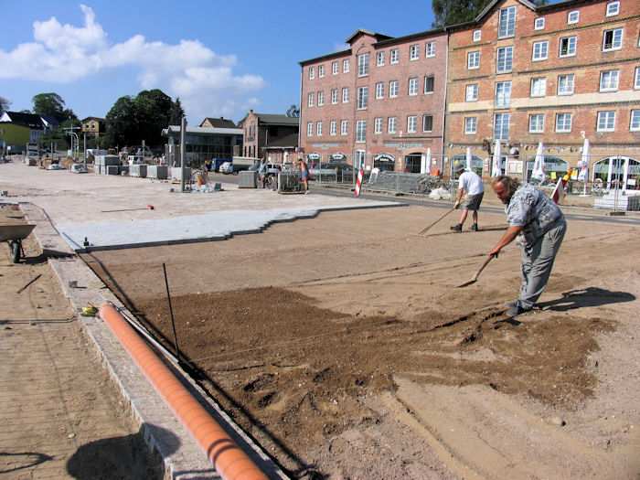 | 04.08.2004 - 10:41 Uhr - Kappeln/Schlei: Nordhafen Umgestaltung des Hafenvorfeldes: Schleibrücke / Hohlweg bis Fährberg Hohlweg - Am Hafen Es wird gerade der Geh- und Radweg für die Pflasterung vorbereitet. Foto: Eckhard Schmidt - Kappeln - (C) 2004 |