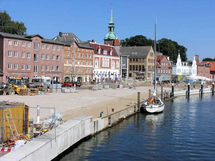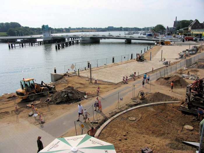 | 06.08.2004 - 10:44 Uhr - Kappeln/Schlei: Nordhafen Umgestaltung des Hafenvorfeldes: Schleibrücke / Hohlweg bis Fährberg Am Hafen - Unterer Fährberg Ansicht von der Wohnung Saxer Foto: Eckhard Schmidt - Kappeln - (C) 2004 |