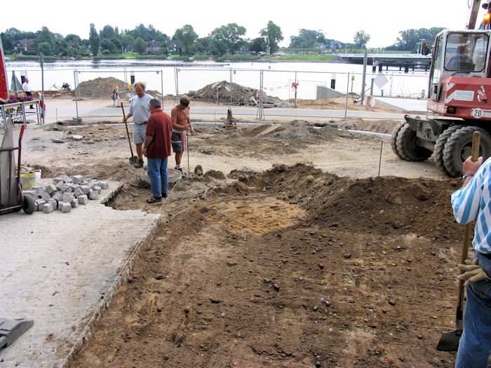 | 02.08.2004 - 10:50 Uhr - Kappeln/Schlei: Nordhafen Umgestaltung des Hafenvorfeldes: Schleibrücke / Hohlweg bis Fährberg Am Hafen Pflasterarbeiten Foto: Eckhard Schmidt - Kappeln - (C) 2004 |