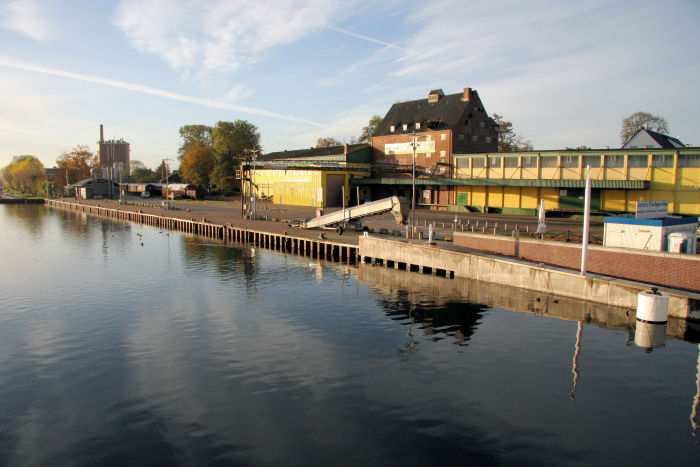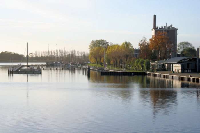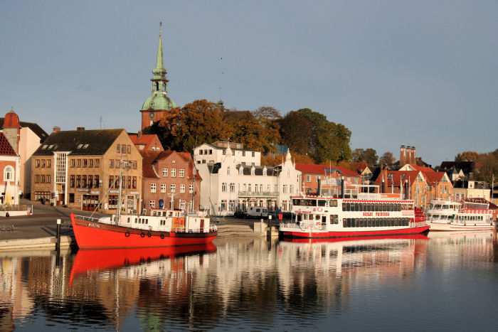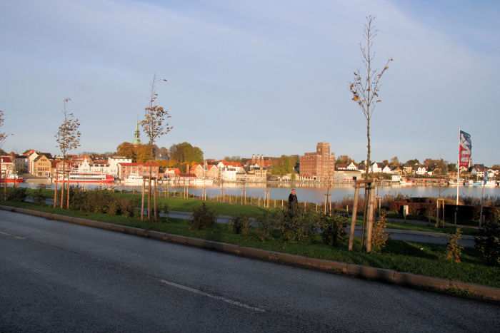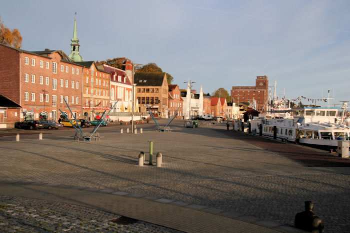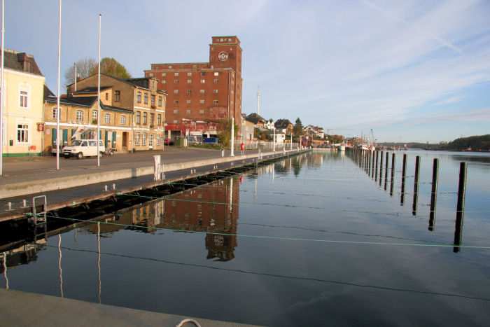 | 10.11.2006 - 8:43 Uhr - Kappeln/Schlei: Nordhafen Blick von der Schleibrücke in Richtung der Wassertreppe (Bildmitte). Foto: Eckhard Schmidt - Kappeln - (C) 2006 |