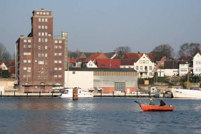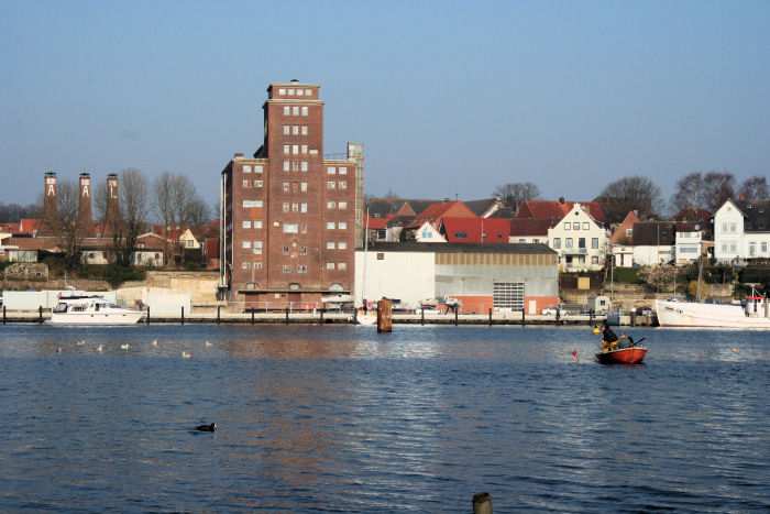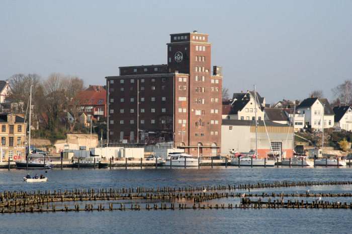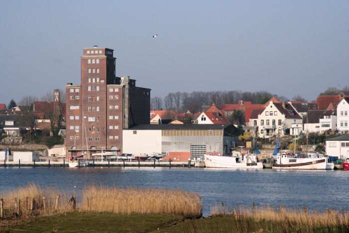 | 01.04.2007 - 9:12 Uhr - Kappeln/Schlei: PK-Speicher im Nordhafen Ostseite des PK-Speichers Die nördlich (rechts) vom Silo gelegene Halle wird gerade zur Schlei hin mit silbergrauer Kunststofffolie verkleidet, damit diese bis zur einer endgültigen Lösung etwas ansehnlicher aussieht. Foto: Eckhard Schmidt - Kappeln - (C) 2007 |