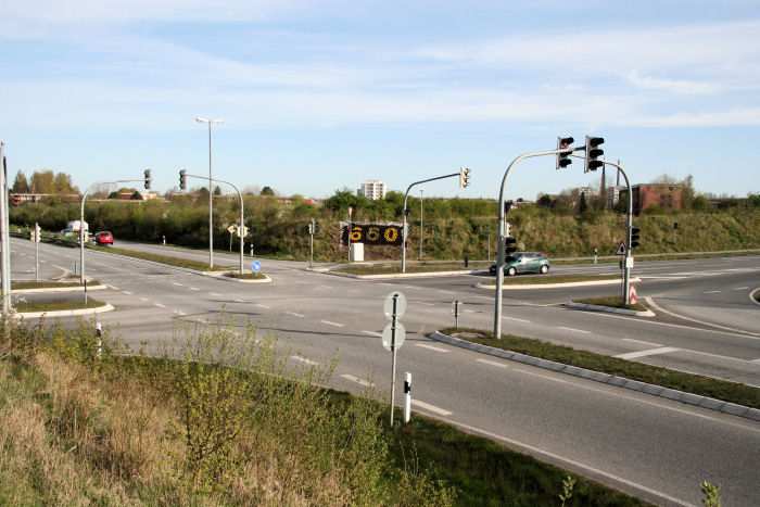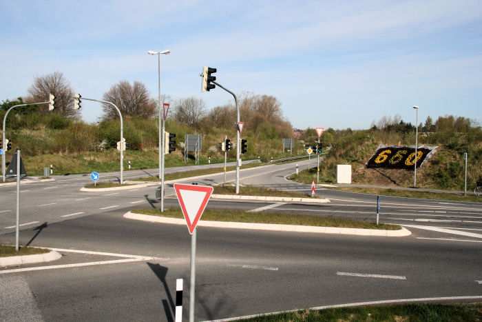 | 17.04.2007 - 9:25 Uhr - Kappeln/Schlei: Ellenberg - Kreuzung Aral-Tankstelle Kappeln: 650 oder 660 Jahre - das ist hier die Frage ? An der Kreuzung der B203 in Höhe der Aral-Tankstelle in Ellenberg wurde die Jahreszahl 650" mit Stiefmütterchen gepflanzt. Blick vom GAG-Silo in Loitmark auf die Kreuzung. Foto: Eckhard Schmidt - Kappeln - (C) 2007 |