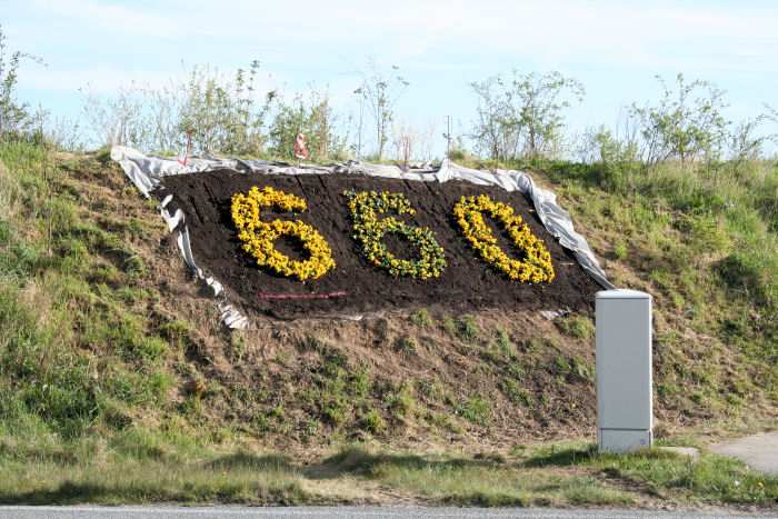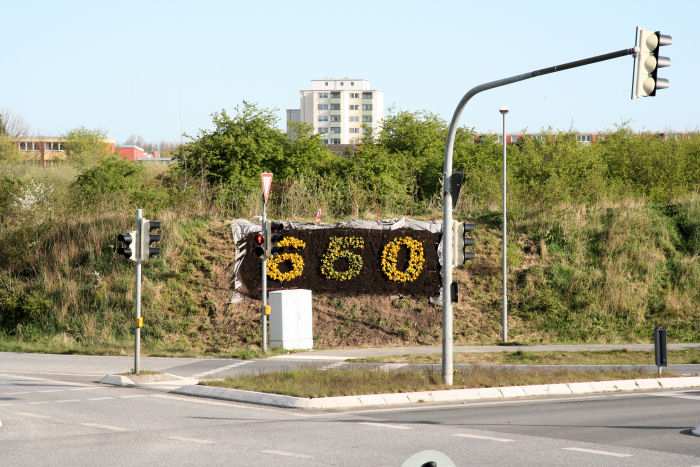 | 17.04.2007 - 9:08 Uhr - Kappeln/Schlei: Ellenberg - Kreuzung Aral-Tankstelle Kappeln: 650 oder 660 Jahre - das ist hier die Frage ? An der Kreuzung der B203 in Höhe der Aral-Tankstelle in Ellenberg wurde die Jahreszahl 650" mit Stiefmütterchen gepflanzt. Foto: Eckhard Schmidt - Kappeln - (C) 2007 |