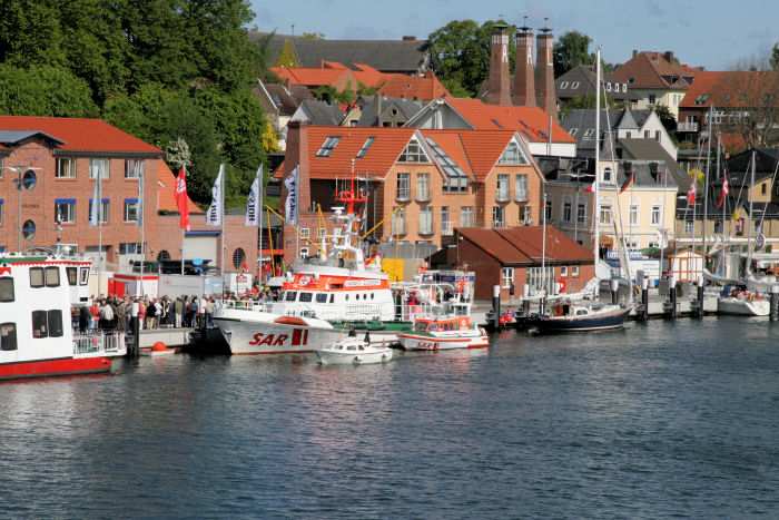 | 17.05.2007 - 10:10 Uhr - Kappeln/Schlei: Heringstage 2007 Heringswette Bei der Wassertreppe haben sich auch Zuschauer eingefunden. Foto: Eckhard Schmidt - Kappeln - (C) 2007 |