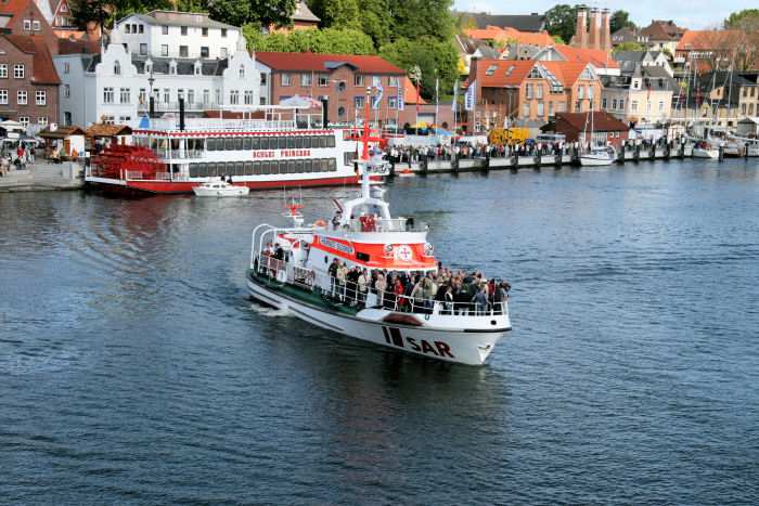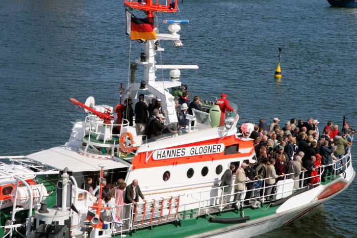 | 17.05.2007 - 10:28 Uhr - Kappeln/Schlei: Heringstage 2007 Heringswette Die HANNES GLOGNER mit den Wettgästen an Bord. Foto: Eckhard Schmidt - Kappeln - (C) 2007 |