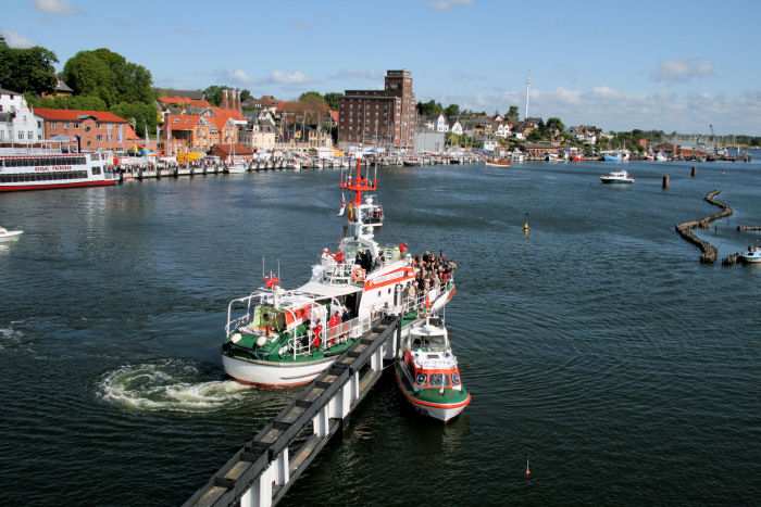 | 17.05.2007 - 10:23 Uhr - Kappeln/Schlei: Heringstage 2007 Heringswette Die HANNES GLOGNER hat mit den Wettgästen an Bord abgelegt. Foto: Eckhard Schmidt - Kappeln - (C) 2007 |