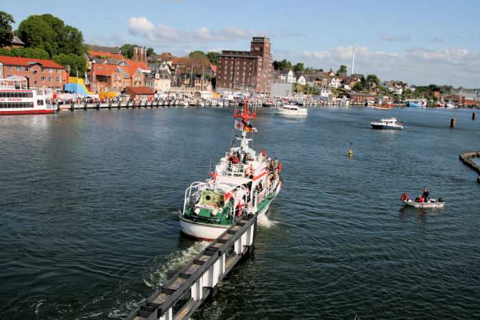 | 17.05.2007 - 10:38 Uhr - Kappeln/Schlei: Heringstage 2007 Heringswette Die HANNES GLOGNER hat abgelegt und nimmt Kurs Nordhafen. Foto: Eckhard Schmidt - Kappeln - (C) 2007 |