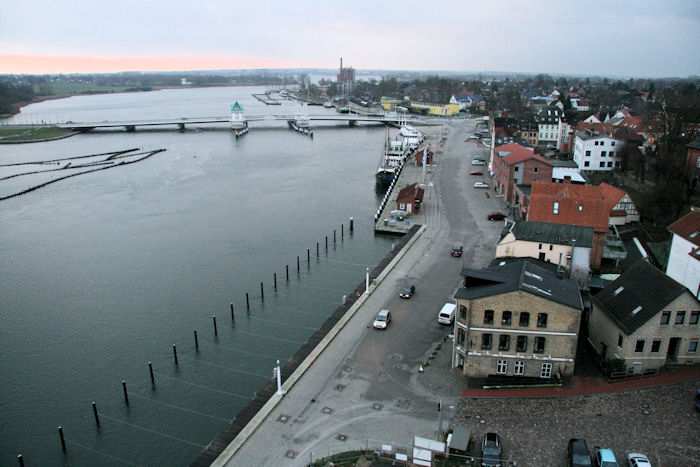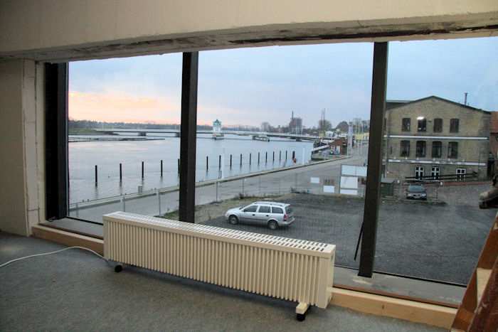 | 20.01.2009 - 9:06 Uhr - Kappeln/Schlei: PK-Speicher im Nordhafen 1. Obergeschoss - Südseite Blick aus dem Büro auf den Gastliegerhafen und die neue Schleibrücke von Kappeln. Foto: Eckhard Schmidt - Kappeln - (C) 2009 |
