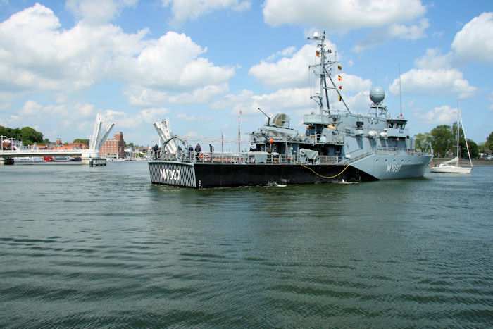 | 20.05.2009 - 14:13 Uhr - Kappeln/Schlei: Heringstage 2009 Einlaufen des Minenjagdbootes LABOE Brückenöffnung 14:00 Uhr Die LABOE hat jetzt an der Pier des Südhafens festgemacht. Foto: Eckhard Schmidt - Kappeln - (C) 2009 |