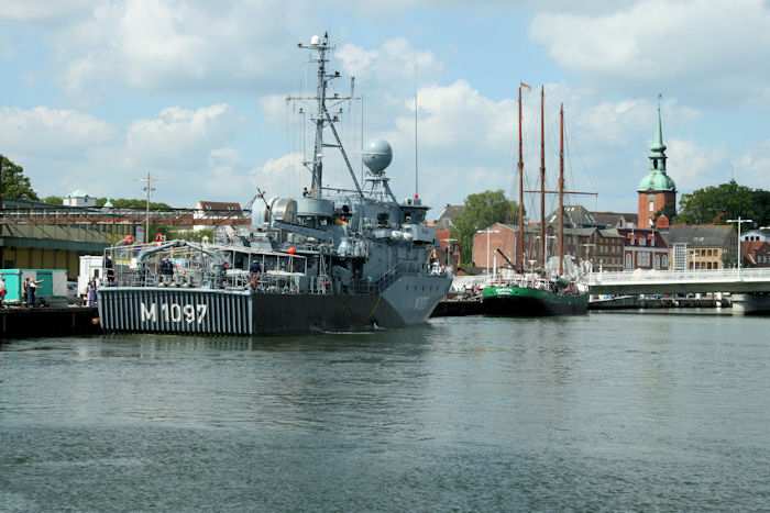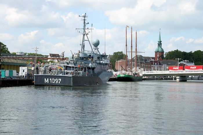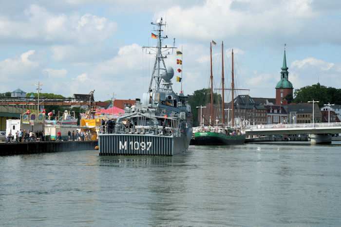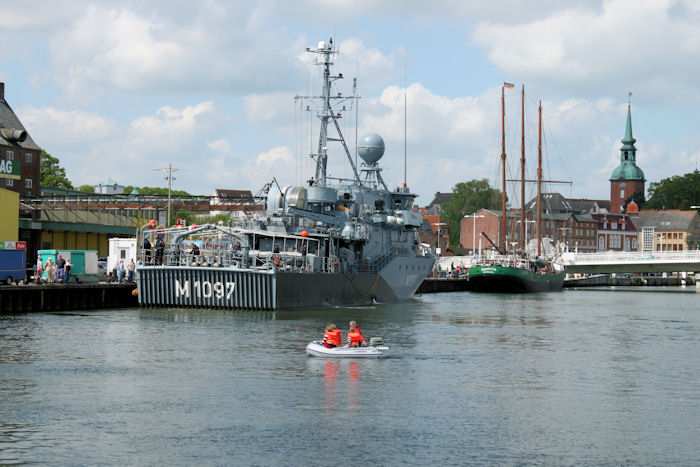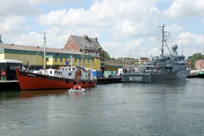 | 20.05.2009 - 14:14 Uhr - Kappeln/Schlei: Heringstage 2009 Einlaufen des Minenjagdbootes LABOE Die LABOE hat zwischen dem Angelkutter WIKING und dem Traditionssegler PIPPILOTTA festgemacht. Foto: Eckhard Schmidt - Kappeln - (C) 2009 |