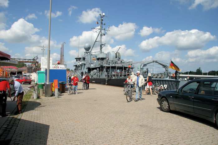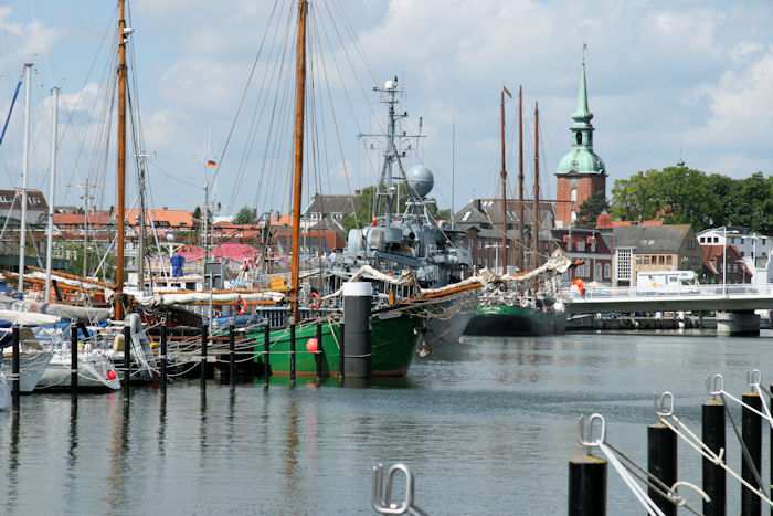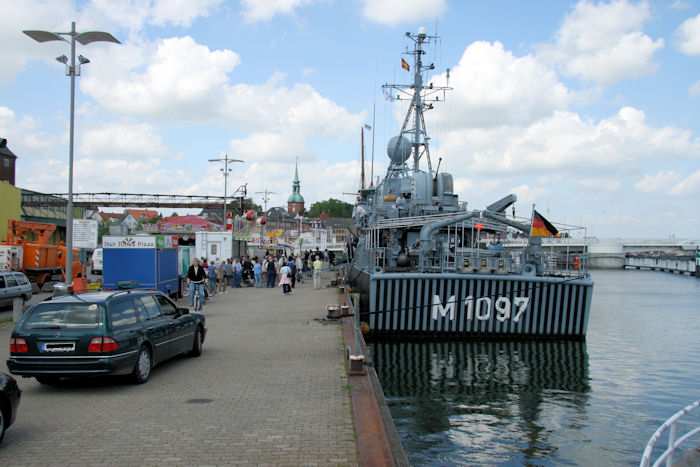 | 20.05.2009 - 14:16 Uhr - Kappeln/Schlei: Heringstage 2009 Einlaufen des Minenjagdbootes LABOE Die LABOE an der Pier des Südhafens. Ansicht von der Mittelbrücke des ASC-Yachthafens. Foto: Eckhard Schmidt - Kappeln - (C) 2009 |