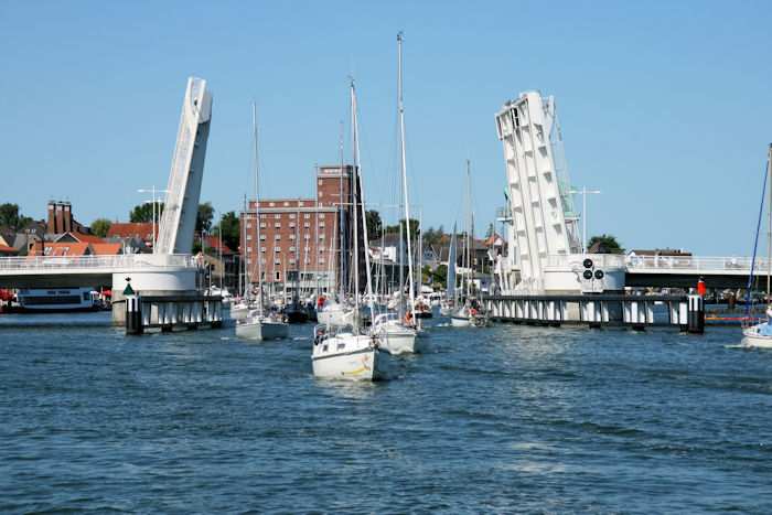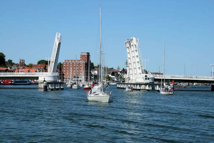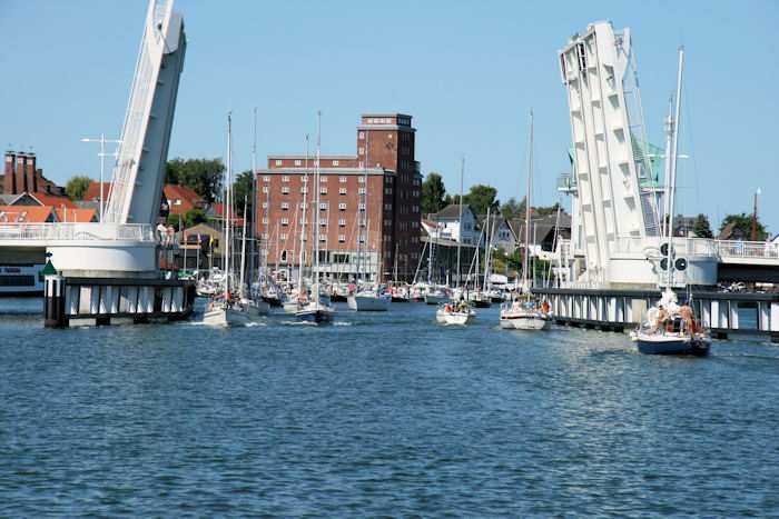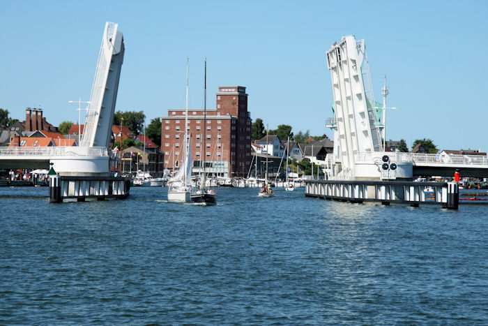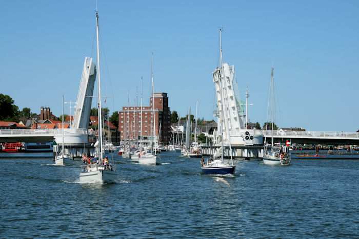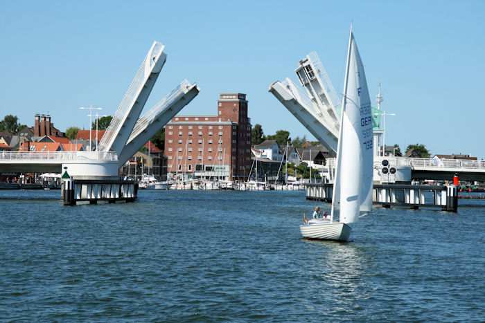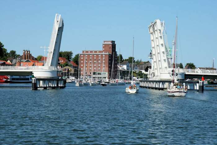 | 01.06.2009 - 14:51:12 Uhr - Kappeln/Schlei: Schleibrücke Brückenöffnung - 14:45 Uhr Die meisten Boote kommen von der Ostsee und steuern jetzt ihre Häfen an der Schlei an. Foto: Eckhard Schmidt - Kappeln - (C) 2009 |