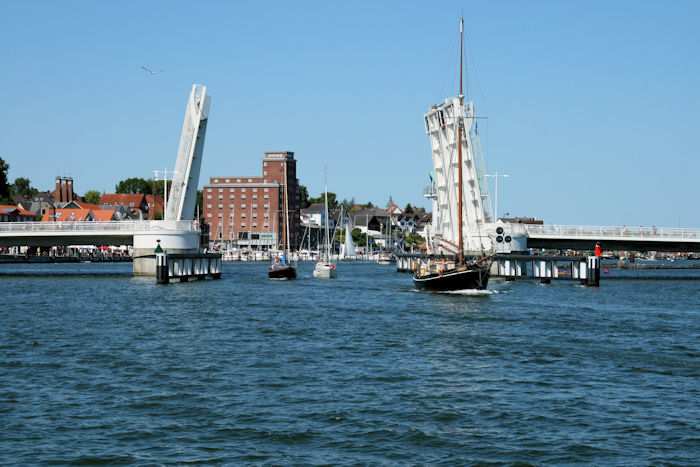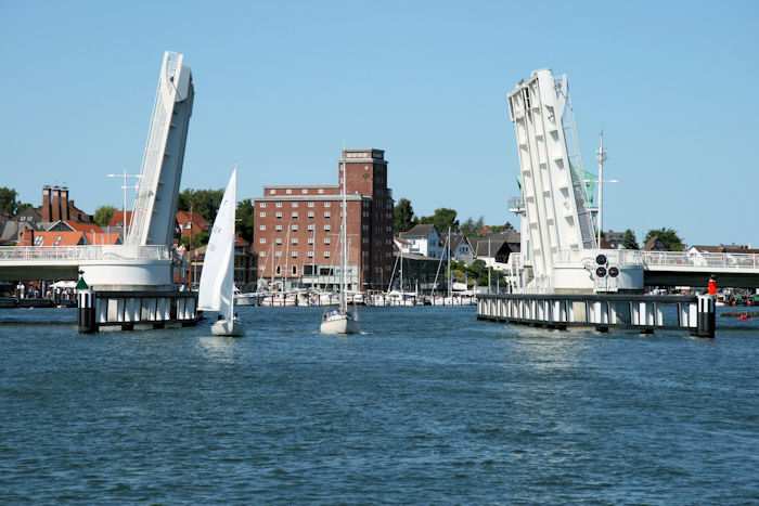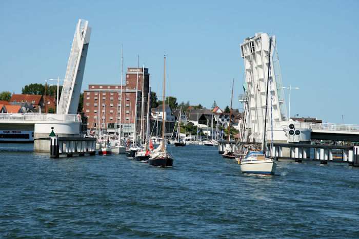 | 01.06.2009 - 14:50:51 Uhr - Kappeln/Schlei: Schleibrücke Brückenöffnung - 14:45 Uhr Von beiden Seiten her passieren die Boote die Schleibrücke. Foto: Eckhard Schmidt - Kappeln - (C) 2009 |
