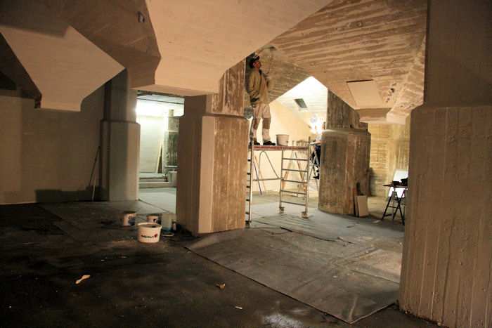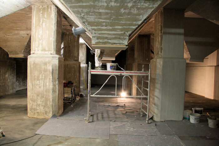 | 03.09.2009 - 8:38 Uhr - Kappeln/Schlei: PK-Speicher im Nordhafen Malerarbeiten im Zellenkeller Nördliche Zellenreihe Osten Norden <---+---> Süden Westen Foto: Eckhard Schmidt - Kappeln - (C) 2009 |