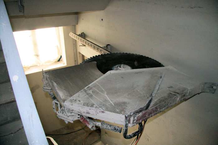 | 06.10.2009 - 9:11 Uhr - Kappeln/Schlei: PK-Speicher im Nordhafen 4. Obergeschoss - Treppenhaus Es soll die Öffnung vom Treppenhaus zum Vorraum des neuen Fahrstuhls etwas höher aufgesägt werden. Foto: Eckhard Schmidt - Kappeln - (C) 2009 |