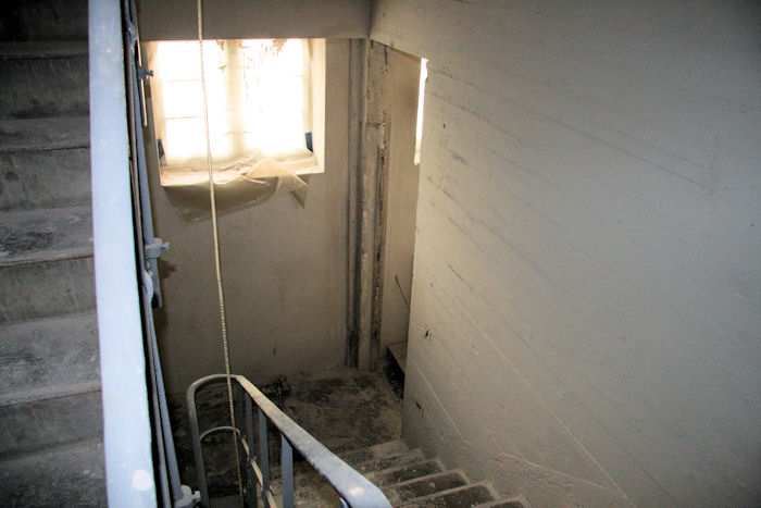 | 06.10.2009 - 9:12 Uhr - Kappeln/Schlei: PK-Speicher im Nordhafen 3. Obergeschoss - Treppenhaus Die Öffnung vom Treppenhaus zum Vorraum des neuen Fahrstuhls wurde bereits etwas höher aufgesägt. Foto: Eckhard Schmidt - Kappeln - (C) 2009 |