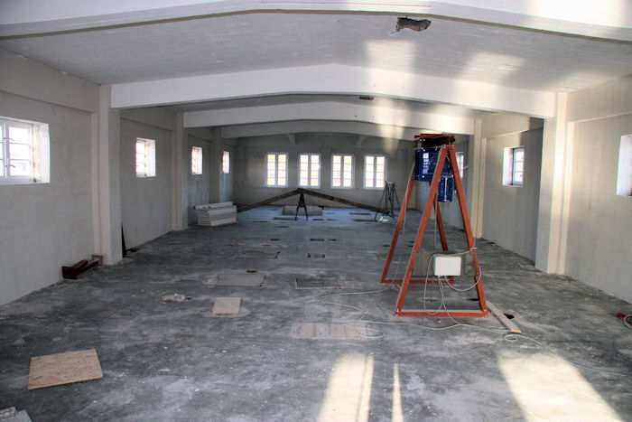 | 09.10.2009 - 9:00 Uhr - Kappeln/Schlei: PK-Speicher im Nordhafen Ein kleiner Rundgang vom 10. bis zum 2. Obergeschoss 6. Obergeschoss - Nordseite - Zellenboden Unter dem Boden befinden sich die Zellen der nördlichen Zellenreihe. Westen + Osten Foto: Eckhard Schmidt - Kappeln - (C) 2009 |