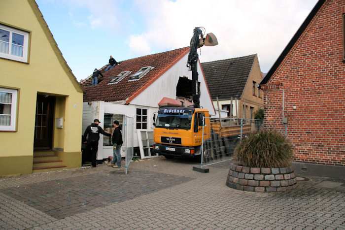 | 13.10.2009 - 9:33 Uhr - Kappeln/Schlei: Anwesen Querstraße Nr. 7 Abbrucharbeiten Es wird gerade das Haus Nr. 7 in der Querstraße abgebrochen. Ausführung der Abbrucharbeiten: Firma Brückner - Kappeln Foto: Eckhard Schmidt - Kappeln - (C) 2009 |