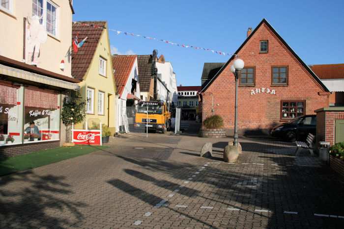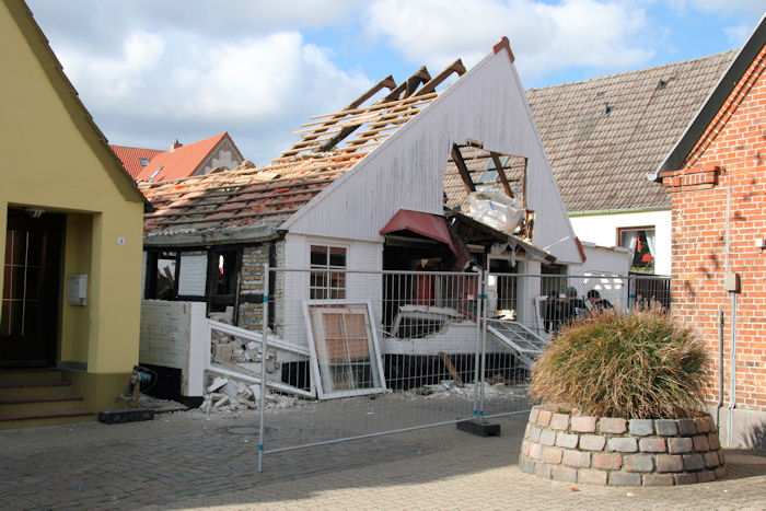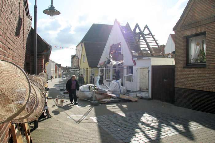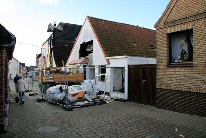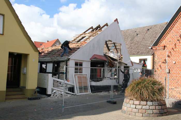 | 13.10.2009 - 13:40 Uhr - Kappeln/Schlei: Anwesen Querstraße Nr. 7 Abbrucharbeiten Blick vom oberen Ende der Querstraße in Richtung Mühlenstraße. Foto: Eckhard Schmidt - Kappeln - (C) 2009 |