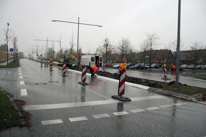 | 12.11.2009 - 8:37 Uhr - Kappeln/Schlei: B203 / Arnisser Straße Schließung der Lücke im Mittelstreifen In der Arnisser Straße befand sich früher die Polizeiwache. Nur die Einsatzfahrzeuge durften die Lücke als Abkürzung nutzen. Foto: Eckhard Schmidt - Kappeln - (C) 2009 |
