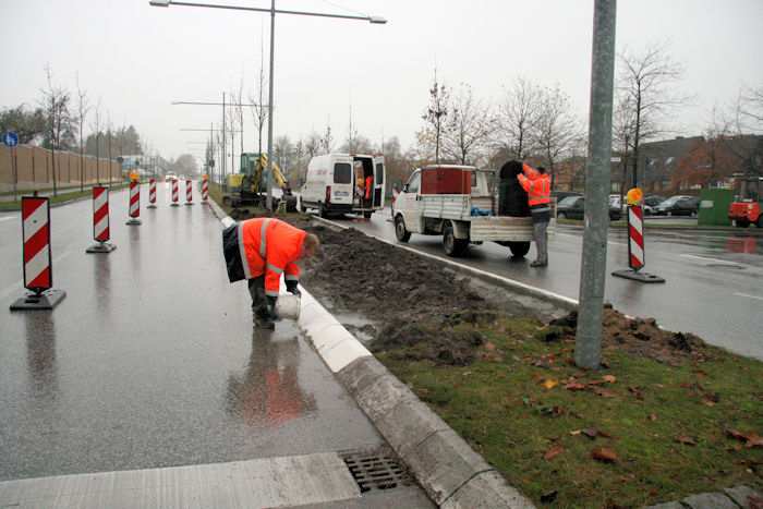 | 12.11.2009 - 8:40 Uhr - Kappeln/Schlei: B203 / Arnisser Straße Schließung der Lücke im Mittelstreifen Es wird gerade der Spalt zwischen der Asphaltdecke und den neuen Bordsteinen verschlossen. Anschließend muss noch der Mutterboden zwischen den Bordsteinen verteilt werden. Foto: Eckhard Schmidt - Kappeln - (C) 2009 |