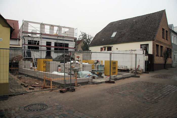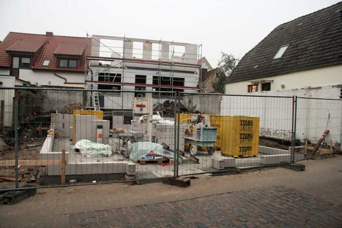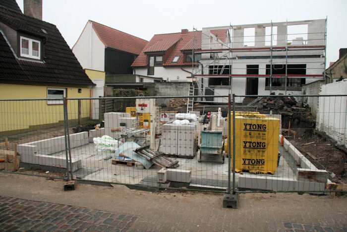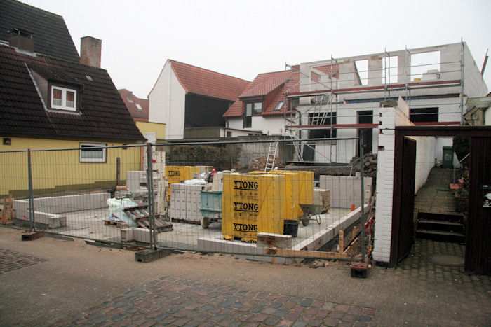 | 09.12.2009 - 9:08 Uhr - Kappeln/Schlei: Anwesen Querstraße Nr. 7 Bauarbeiten Es werden gerade die Außenwände aufgemauert. Foto: Eckhard Schmidt - Kappeln - (C) 2009 |