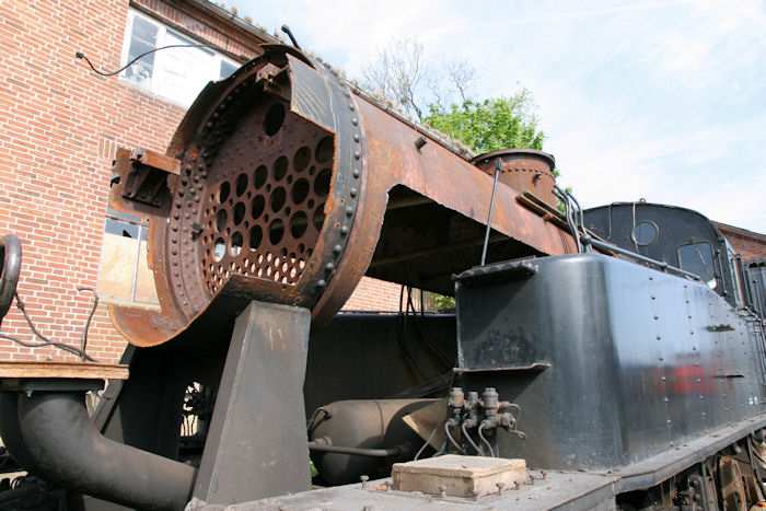 | 20.05.2010 - 9:54 Uhr - Kappeln/Schlei: Angelner Dampfeisenbahn Dampflok S1916 Kesselreparatur Aus dem Kessel wurde komplette Boden heraus gebrannt. Foto: Eckhard Schmidt - Kappeln - (C) 2010 |