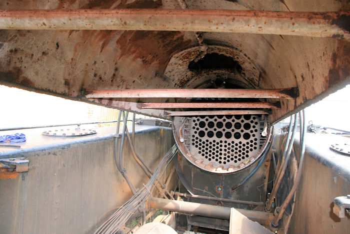 | 20.05.2010 - 9:55 Uhr - Kappeln/Schlei: Angelner Dampfeisenbahn Dampflok S1916 Kesselreparatur Aus dem Kessel wurde der komplette Boden heraus gebrannt. Foto: Eckhard Schmidt - Kappeln - (C) 2010 |