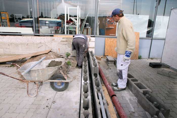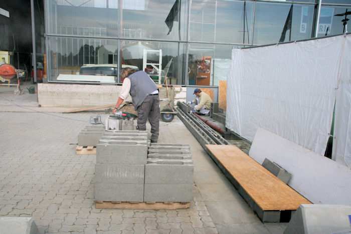 | 27.05.2010 - 9:05 Uhr - Kappeln/Schlei: PK-Speicher im Nordhafen PK-Speicher - Ostseite - Gasanschluss Zum Schutz der Gasleitung wird diese zwischen zwei Mauern aus Betonsteinen verlegt. Die Hohlräume der Steine werden mit Beton aufgefüllt. Foto: Eckhard Schmidt - Kappeln - (C) 2010 |