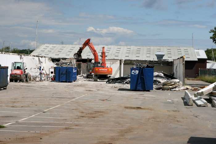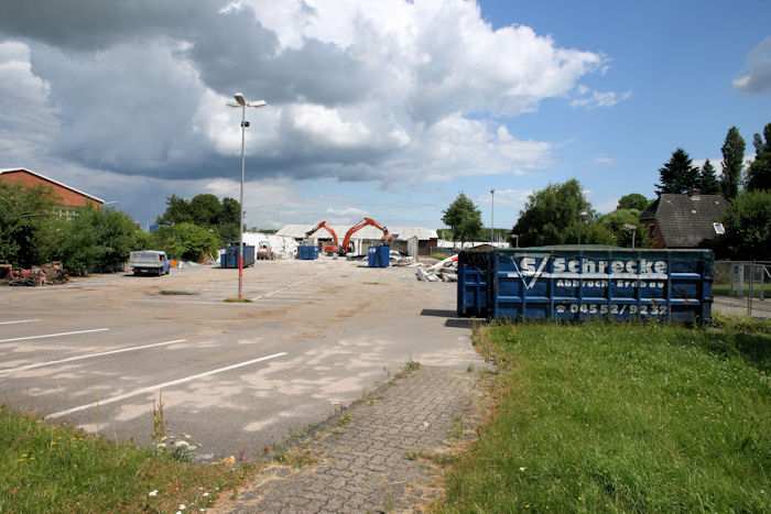 | 06.07.2010 - 13:54 Uhr - Kappeln/Schlei: Wassermühlenstraße / Ziegeleiweg Neubau eines Penny Marktgebäudes Abbrucharbeiten Vom alten Gebäude stehen nur noch die Seitenwände und die Rückwand. Foto: Eckhard Schmidt - Kappeln - (C) 2010 |