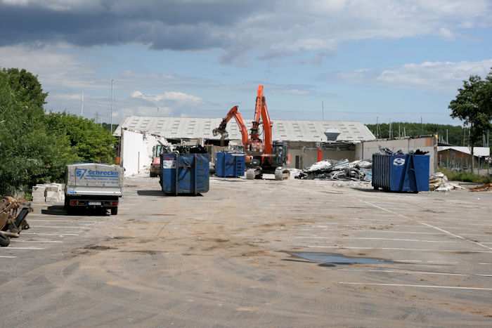 | 06.07.2010 - 13:55 Uhr - Kappeln/Schlei: Wassermühlenstraße / Ziegeleiweg Neubau eines Penny Marktgebäudes Abbrucharbeiten Für jede Materialsorte steht ein Container zur Verfügung. Foto: Eckhard Schmidt - Kappeln - (C) 2010 |