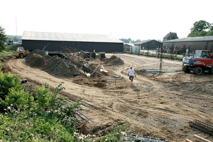 | 04.08.2010 - 8:43 Uhr - Kappeln/Schlei: Wassermühlenstraße / Ziegeleiweg Neubau eines Penny Marktgebäudes Rechts: Fundament für die Nordwand Vor der Laderampe zum Entladen der LKWs entsteht eine abschüssige Rampe. Osten Norden <--- + ---> Süden Foto: Eckhard Schmidt - Kappeln - (C) 2010 |