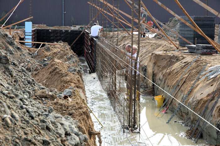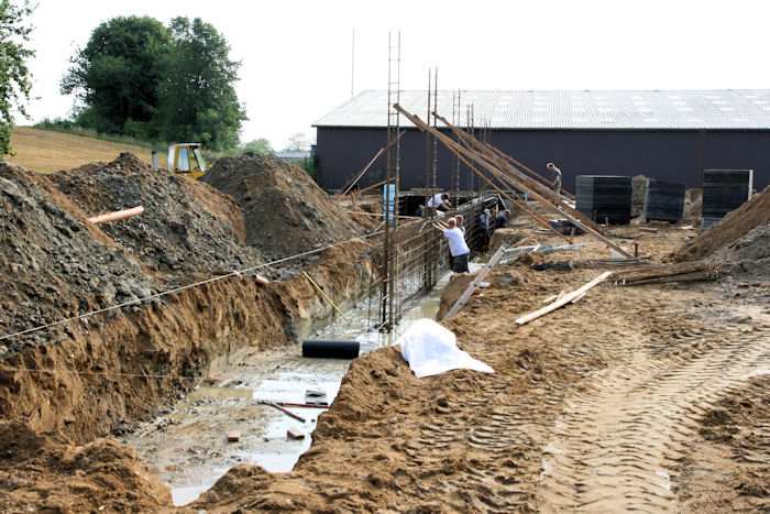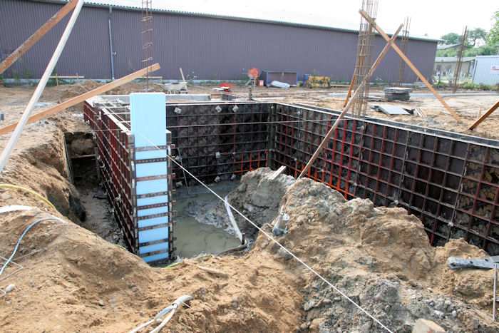 | 04.08.2010 - 8:44 Uhr - Kappeln/Schlei: Wassermühlenstraße / Ziegeleiweg Neubau eines Penny Marktgebäudes Fundament für die Nordwand Aufstellung von Schalwänden und Ausführung von Bewehrungsarbeiten Foto: Eckhard Schmidt - Kappeln - (C) 2010 |