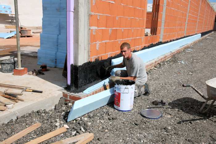 | 01.09.2010 - 13:34 Uhr - Kappeln/Schlei: Wassermühlenstraße / Ziegeleiweg Neubau eines Penny Marktgebäudes Südseite Die Polystyrol Hartschaumplatten werden mit Bitumen angeklebt. Foto: Eckhard Schmidt - Kappeln - (C) 2010 |