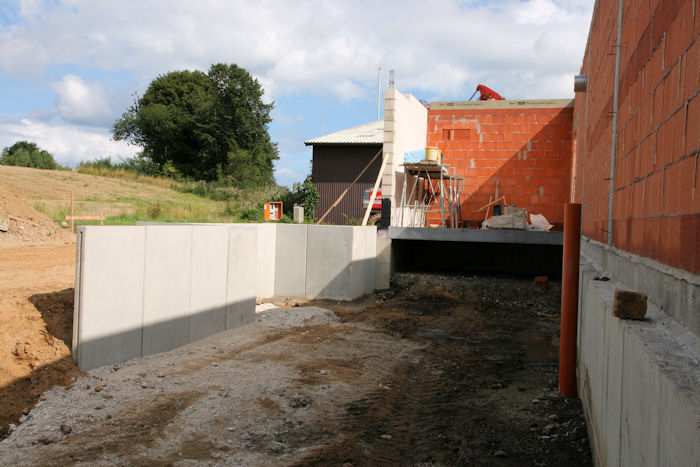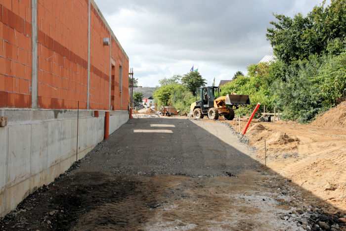 | 01.09.2010 - 13:27 Uhr - Kappeln/Schlei: Wassermühlenstraße / Ziegeleiweg Neubau eines Penny Marktgebäudes Nordseite Eine abschüssige Rampe führt hinab zur Laderampe. Foto: Eckhard Schmidt - Kappeln - (C) 2010 |