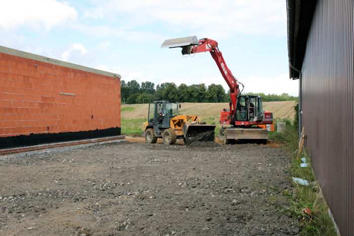 | 01.09.2010 - 13:33 Uhr - Kappeln/Schlei: Wassermühlenstraße / Ziegeleiweg Neubau eines Penny Marktgebäudes Ostseite Der Bagger verteilt den zerkleinerten Asphalt. Foto: Eckhard Schmidt - Kappeln - (C) 2010 |