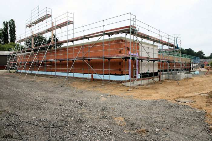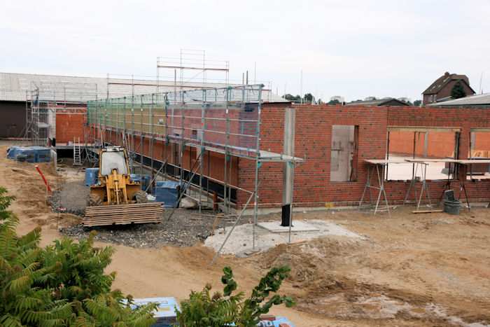 | 08.09.2010 - 9:08 Uhr - Kappeln/Schlei: Wassermühlenstraße / Ziegeleiweg Neubau eines Penny Marktgebäudes Südseite / Ostseite Bei der Südwand wird das östliche Drittel verblendet. Foto: Eckhard Schmidt - Kappeln - (C) 2010 |
