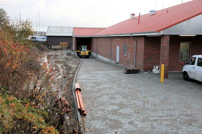 | 05.11.2010 - 8:39 Uhr - Kappeln/Schlei: Wassermühlenstraße / Ziegeleiweg Neubau eines Penny Marktgebäudes Westseite Vor den Schiebetüren wurden die Betonplatten verlegt. Foto: Eckhard Schmidt - Kappeln - (C) 2010 |