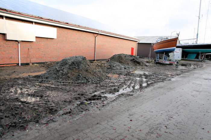 | 05.11.2010 - 8:41 Uhr - Kappeln/Schlei: Wassermühlenstraße / Ziegeleiweg Neubau eines Penny Marktgebäudes Südseite Schlamm, Schlamm und nochmals Schlamm Foto: Eckhard Schmidt - Kappeln - (C) 2010 |