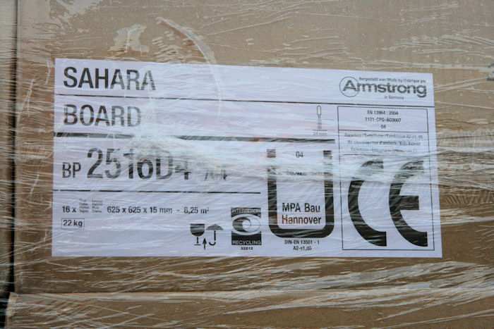 | 05.11.2010 - 8:52 Uhr - Kappeln/Schlei: Wassermühlenstraße / Ziegeleiweg Neubau eines Penny Marktgebäudes Abgehängte Decke Ein LKW bringt gerade die Platten für die Decke. Hersteller: Armstrong - Akustische Deckenplatten (www.armstrong.de) Deckenplatte: Sahara - Produktnummer: 2516D - Abmessungen: 625 x 525 x 15 mm (www.armstrong.de/commclgeu/eu1/de/de/ceiling_item_detail.asp?itemId=488) Foto: Eckhard Schmidt - Kappeln - (C) 2010 |