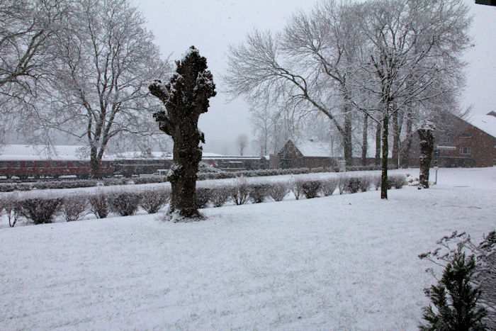 | 13.12.2010 - 11:33 Uhr - Kappeln/Schlei: Bahnhofsweg Leise rieselt der Schnee Blick von meiner Terrasse in Richtung Ellenberg / Schleibrücke. Ich war um 10:00 Uhr mit dem Rad in Arnis als es anfing zu schneien. Foto: Eckhard Schmidt - Kappeln - (C) 2010 |
