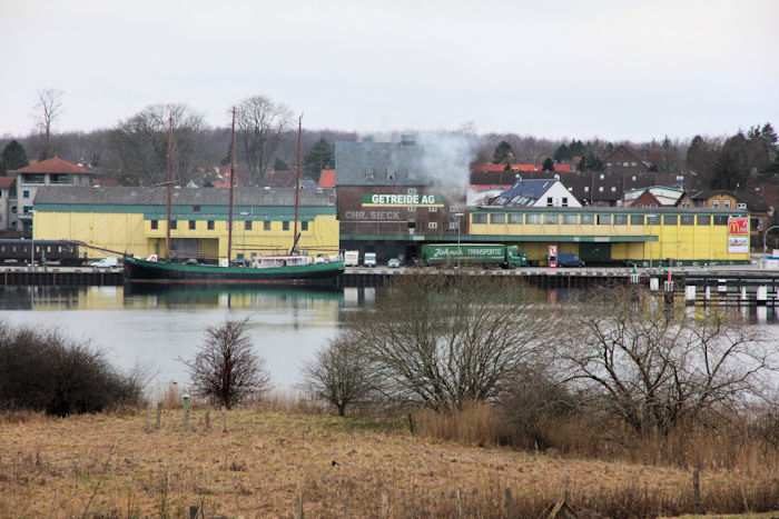 | 09.02.2011 - 9:01 Uhr - Kappeln/Schlei: Ellenberg Ansichten von Kappeln PK-Speicher im Nordhafen Im Vordergrund Ellenberg Foto: Eckhard Schmidt - Kappeln - (C) 2011 |
