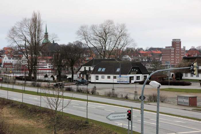 | 09.02.2011 - 9:03 Uhr - Kappeln/Schlei: Ellenberg Ansichten von Kappeln Nikolai-Kirche und PK-Speicher im Nordhafen Im Vordergrund Ellenberg mit dem Restaurant Zur Schleibrücke" Foto: Eckhard Schmidt - Kappeln - (C) 2011 |