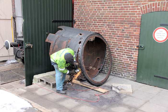 | 01.03.2011 - 13:53 Uhr - Kappeln/Schlei: Angelner Dampfeisenbahn Dampflok S1916 - Kesselreparatur - Statusbilder Die neue Rauchkammer wird mit den Resten der alten Rauchkammer verschweißt werden. Foto: Eckhard Schmidt - Kappeln - (C) 2011 |