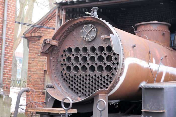 | 01.03.2011 - 13:52 Uhr - Kappeln/Schlei: Angelner Dampfeisenbahn Dampflok S1916 - Kesselreparatur - Statusbilder Man hat noch Reste der alten Rauchkammer stehen lassen. Die Reste der alten Rauchkammer sind über Nieten mit dem Kessel verbunden. Foto: Eckhard Schmidt - Kappeln - (C) 2011 |