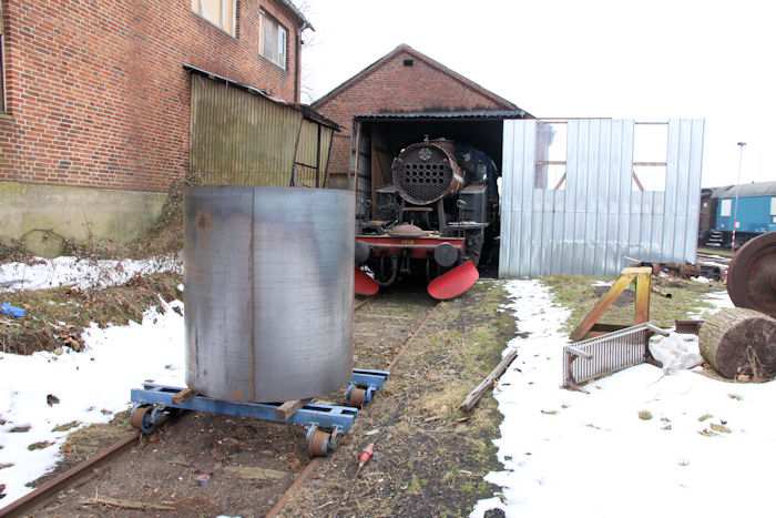 | 01.03.2011 - 13:49 Uhr - Kappeln/Schlei: Angelner Dampfeisenbahn Dampflok S1916 - Kesselreparatur - Statusbilder Alle drei Loks Diesellok Zuckersusi" - Dampflok Julchen" - Dampflok S1916 stehen im Lokschuppen. Foto: Eckhard Schmidt - Kappeln - (C) 2011 |