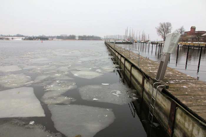| 02.03.2011 - 8:03 Uhr - Kappeln/Schlei: Hafen Eislage auf der Schlei im Bereich Kappeln - Eisschollen ASC-Yachthafen Südlicher Teil des Hafens Eisfrei Foto: Eckhard Schmidt - Kappeln - (C) 2011 |